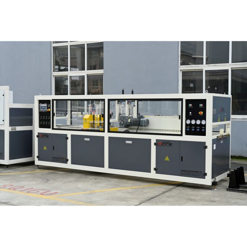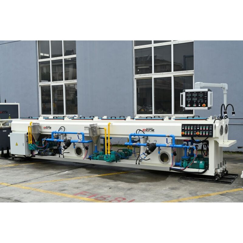The production line is equipped with a combination device of vacuum sizing box and spray cooling tank, which ensures high roundness and smooth surface without defects of the pipes through precise vacuum adsorption and segmented cooling; The servo traction system runs smoothly, with adjustable traction force and precise matching with extrusion speed to prevent pipe stretching and deformation; The fully automatic cutting saw adopts CNC positioning, with a flat cutting end face and a length error of less than ± 1mm, meeting the accuracy requirements for mass production.