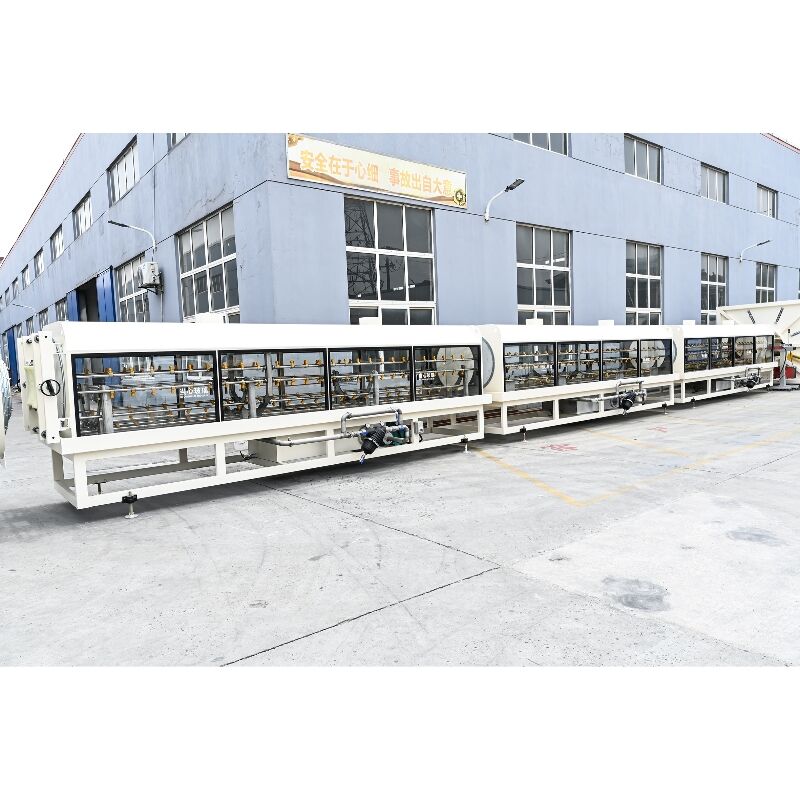 The production line adopts a composite shaping process of internal pressure sizing and spray cooling. Large diameter pipes are matched with multiple sets of crawler tractors, while small diameter pipes are adapted with roller traction and automatic winding devices. Internal pressure sizing ensures high roundness and accurate dimensional accuracy of the pipe by precisely controlling the air pressure inside the pipe, and the wall thickness tolerance can be controlled within ± 0.2mm; The segmented spray cooling system adopts a gradient cooling design, effectively eliminating internal stress in the pipes and avoiding deformation and cracking. The finished pipe ring stiffness can reach SN8-SN16, far exceeding the national standard requirements.